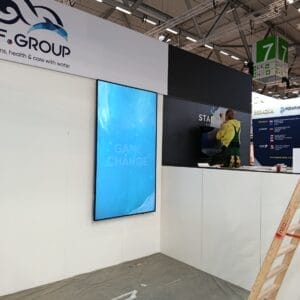 Aufbau (optional): Unsere Techniker bringen das Display in Position und nehmen es in Betrieb.