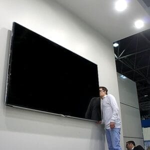 Frage: "98 zoll display mieten – kann ich das selbst aufhängen oder muss ein Techniker kommen?"