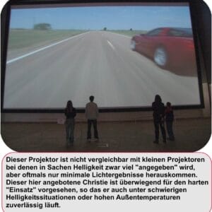 Herausforderung: In einer hellen Werkshalle eines Chemieunternehmens sollen 50 Mitarbeiter an neuen Sicherheitsrichtlinien geschult werden. Abdunklung nicht möglich, die Präsentation enthält technische Zeichnungen.